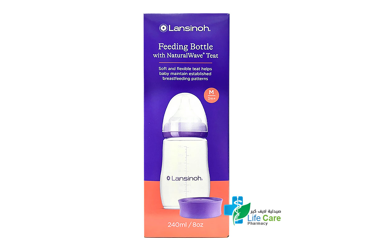 LANSINOH PLASTIC FEEDING BOTTLE WITH NATURALWAVE TEAT FROM 3 MONTHS 240 ML